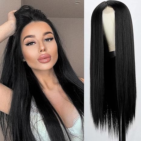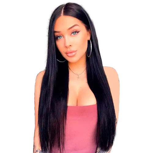 ✨ Lúcete con una Peluca Negra Lisa tan Natural que Nadie Notará la Diferencia